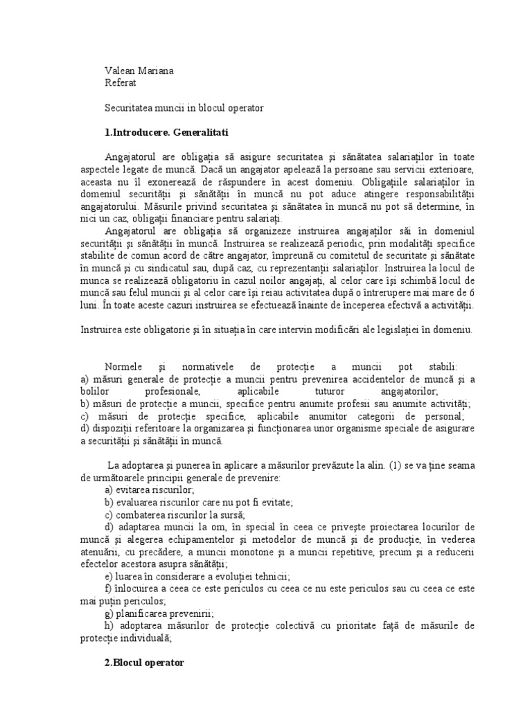 Referat Protectia Muncii Ssm. Interesati de lucrurile cu adevarat importante privind aplicarea prevederilor legale, in domeniul securitatii si sanatatii in munca. Stabilirea zonelor care necesita semnalizare de ssm. Metoda de audit ssm vizează componenta care se referă la conformitatea cu prevederile legislaţiei în domeniul ssm. Decizii de organizarea activitatii pe locurile de munca; Inspectia muncii reprezinta autoritatea competenta in ceea ce proveste controlul aplicarii legislatiei referitoare le securitatea si sanatatea in munca.