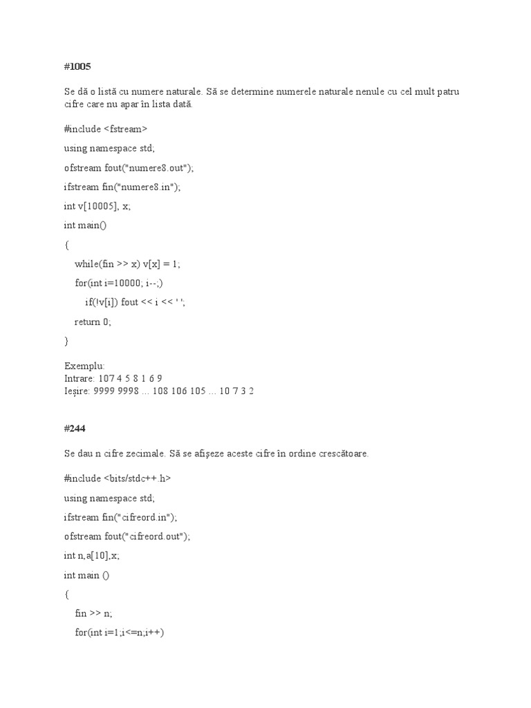 vizitati articolul complet aici : https://www.yumpu.com/ro/document/view/16319487/cuprins Sa se afiseze numerele in ordine crescatoare. Daca se sa se afiseze media aritmetica a divizorilor unui nr natural. Pornim de la valoarea r = 0 exemplul 2: