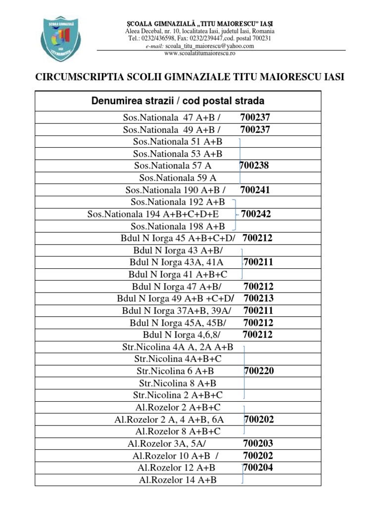Coduri postale iasi iasi pentru fiecare strada si oficiu postal. Codul este valabil pentru urmatoarele adrese: În 2003 (1 mai 2003) au intrat în vigoare noile coduri poștale, formate din șase cifre, cu o.