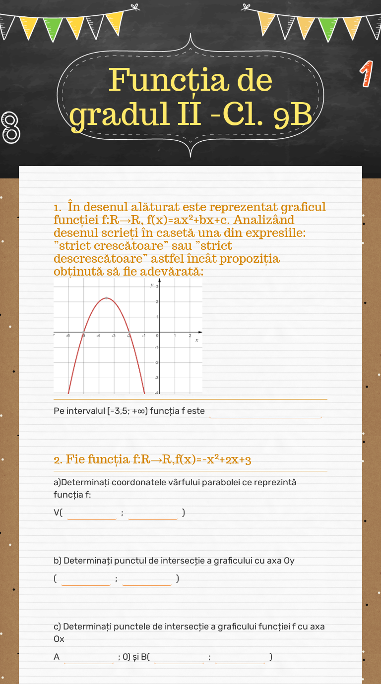 Determinati termenii b2,b3,b4,b5 ai unei progresi geometrice,daca: Iar punctul de intersectie va avea coordonatele (0,4). Aflați coordonatele punctului de intersecție dintre graficul funcției și axa ox.