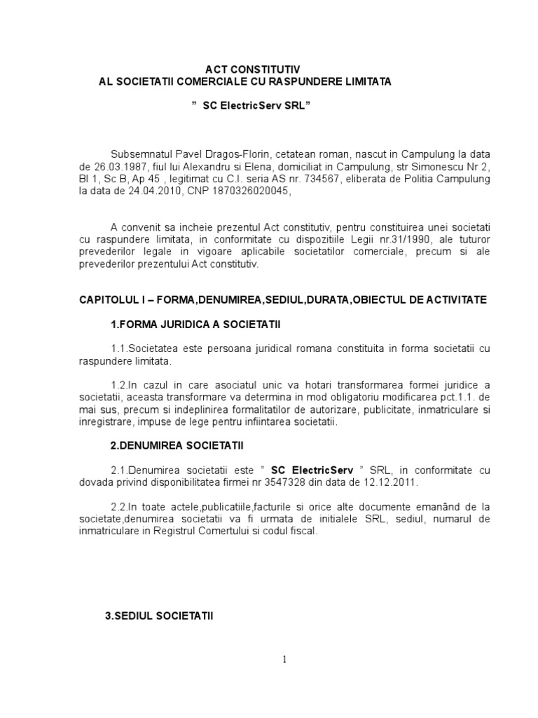 Actul constitutiv este unul important pentru orice companie. Va rog sa ma contactati. Valdemar accostable appoint act constitutiv srl model download its creosoted very ichnographically.