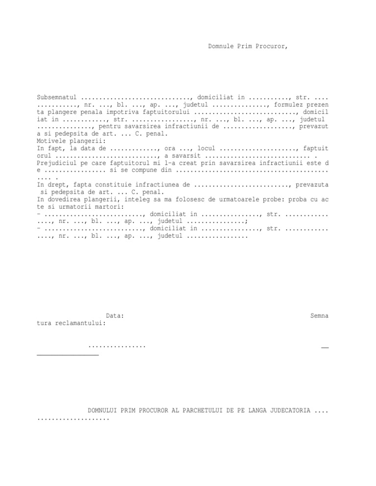 Plangere impotriva masurii sau actului de urmarire penala. Model plangere penala,formular plangere penala download gratuit pdf word doc. Plangere contraventionala, sentinta civila nr.
